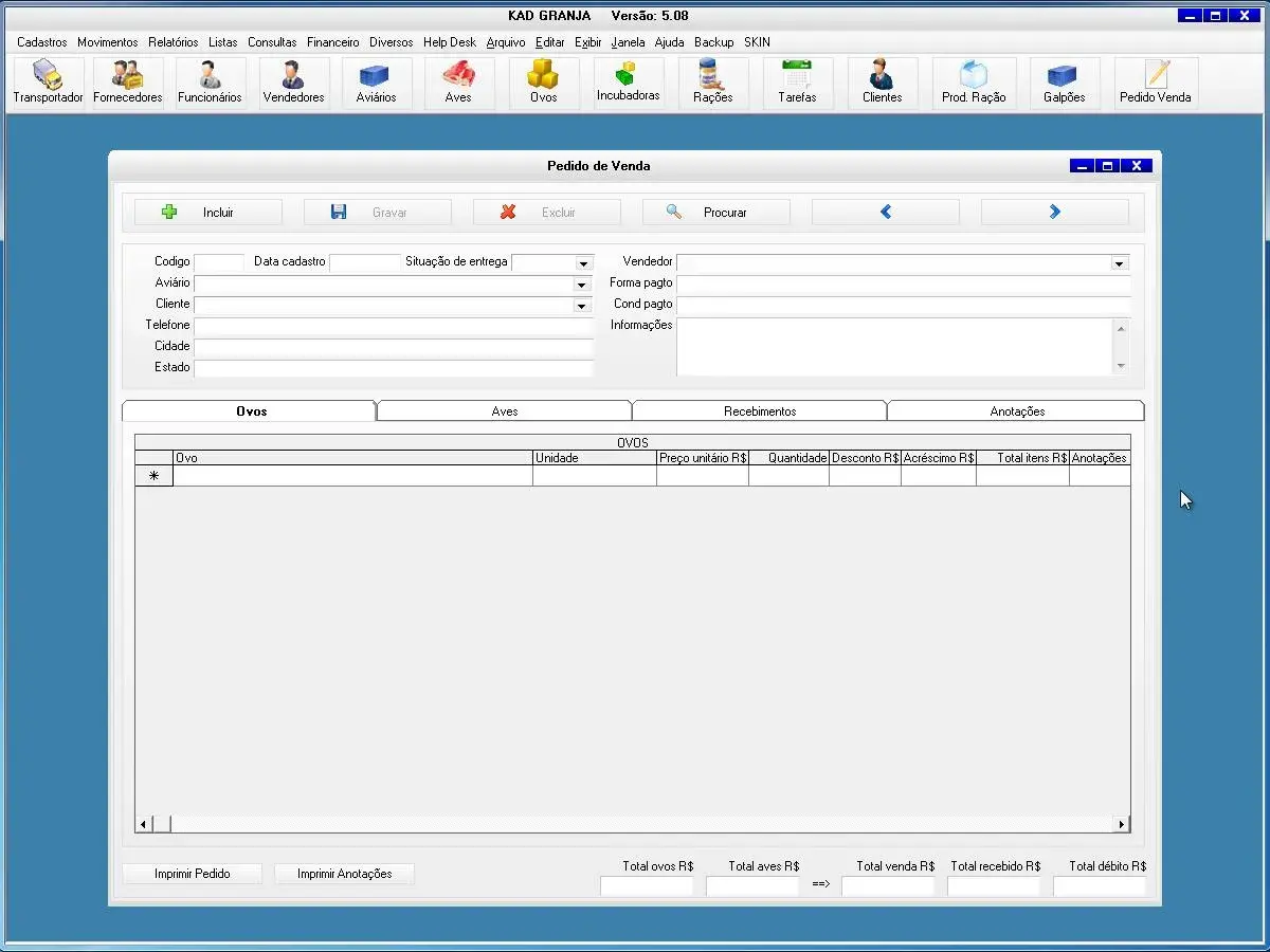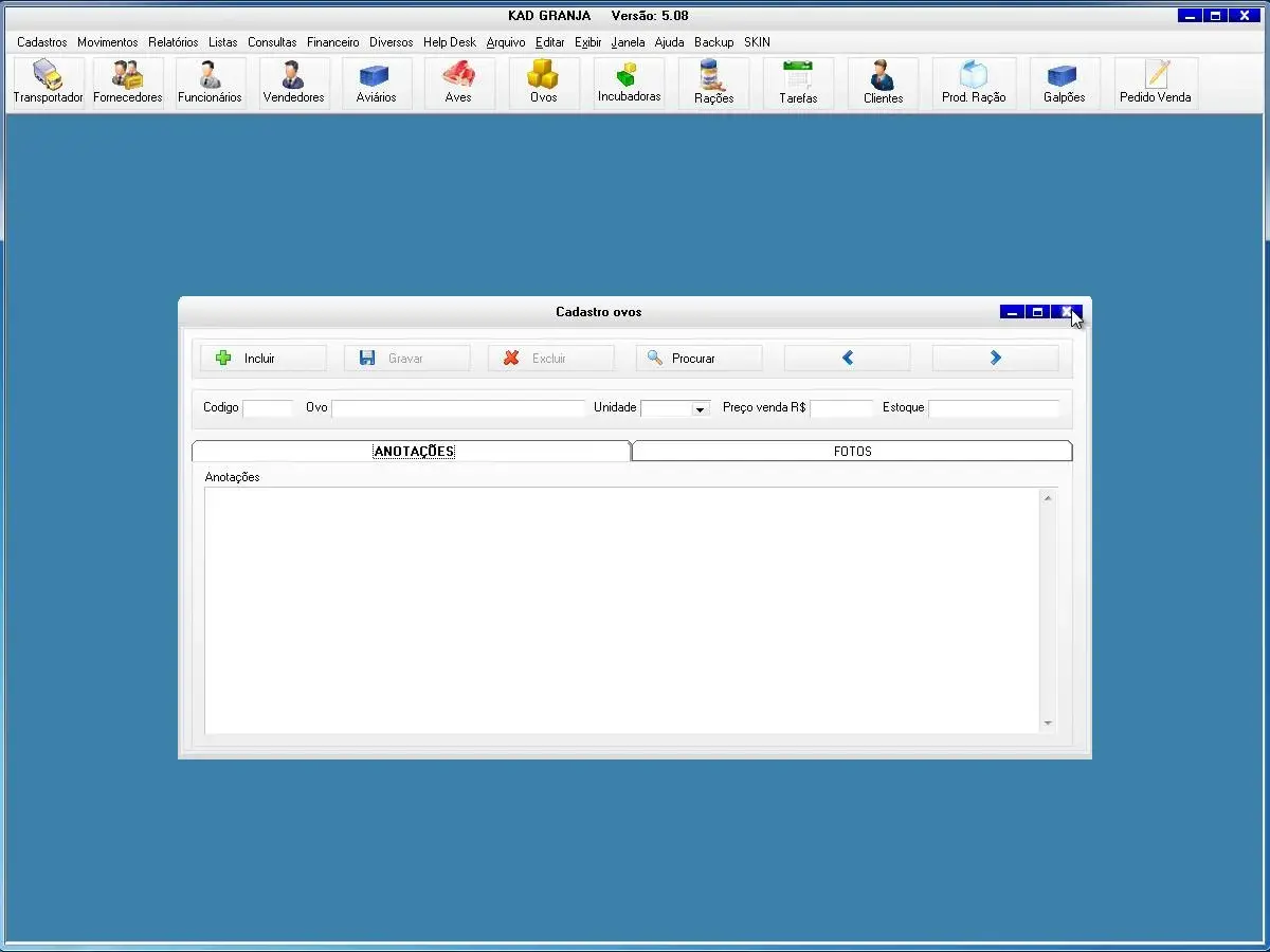 O sistema para avicultura possui cadastro de venda de aves e ovos