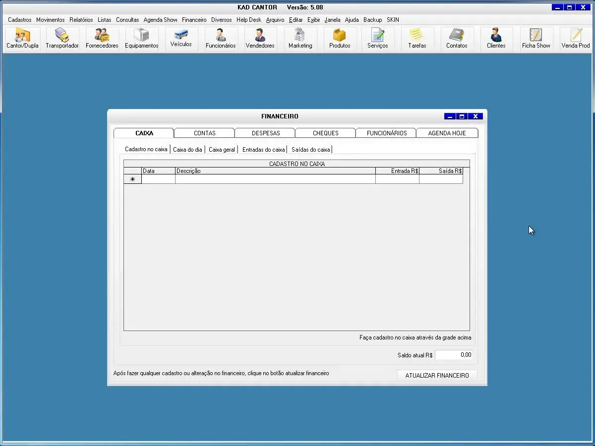 caixa, contas, despesas, funcionários, agenda hoje