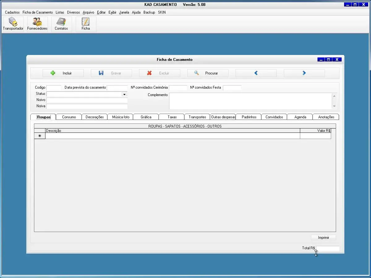 O software Kad Casamento é um ótimo software para gerenciamento de organização de casamento