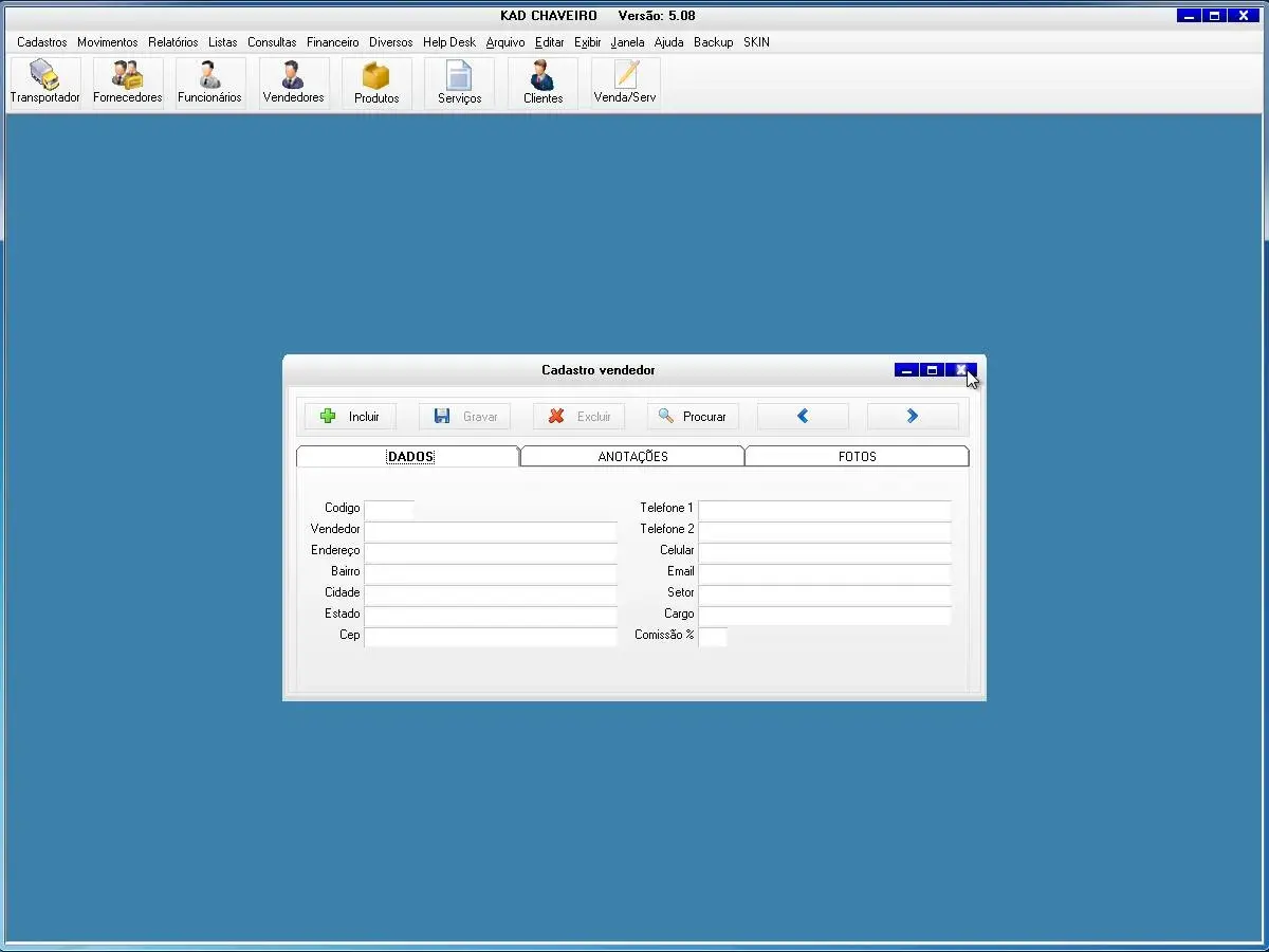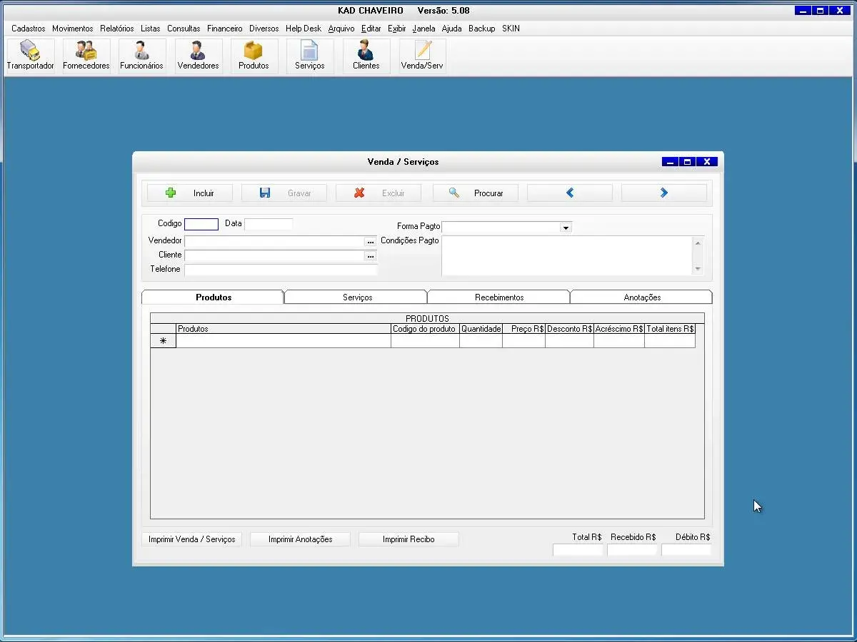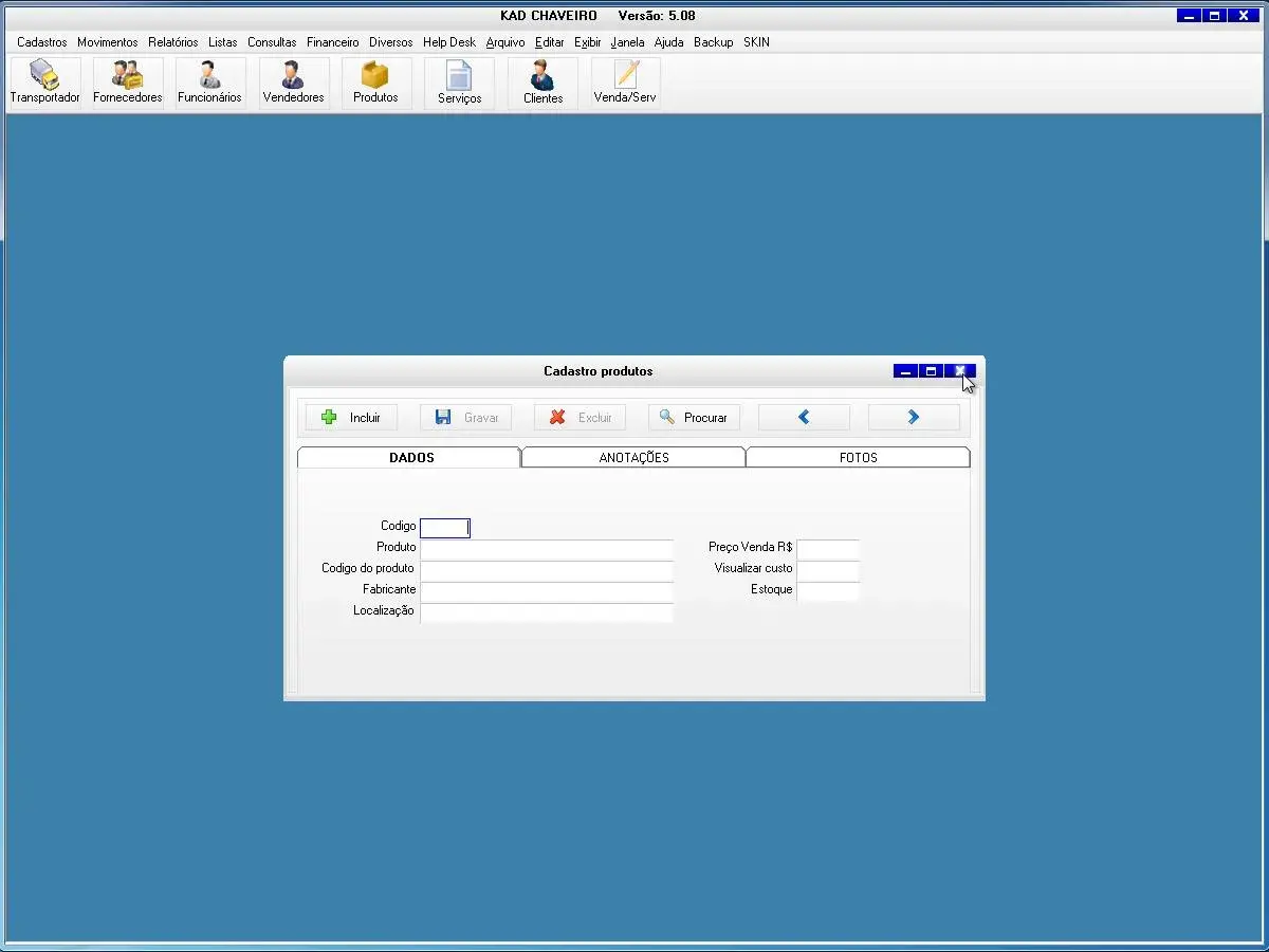 O software para chaveiro possui cadastro de vendas e serviços de chaves