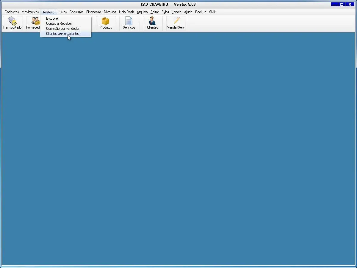estoque, contas a receber, vendas ao cliente, vendas por vendedor, comissão por vendedor, clientes aniversariantes