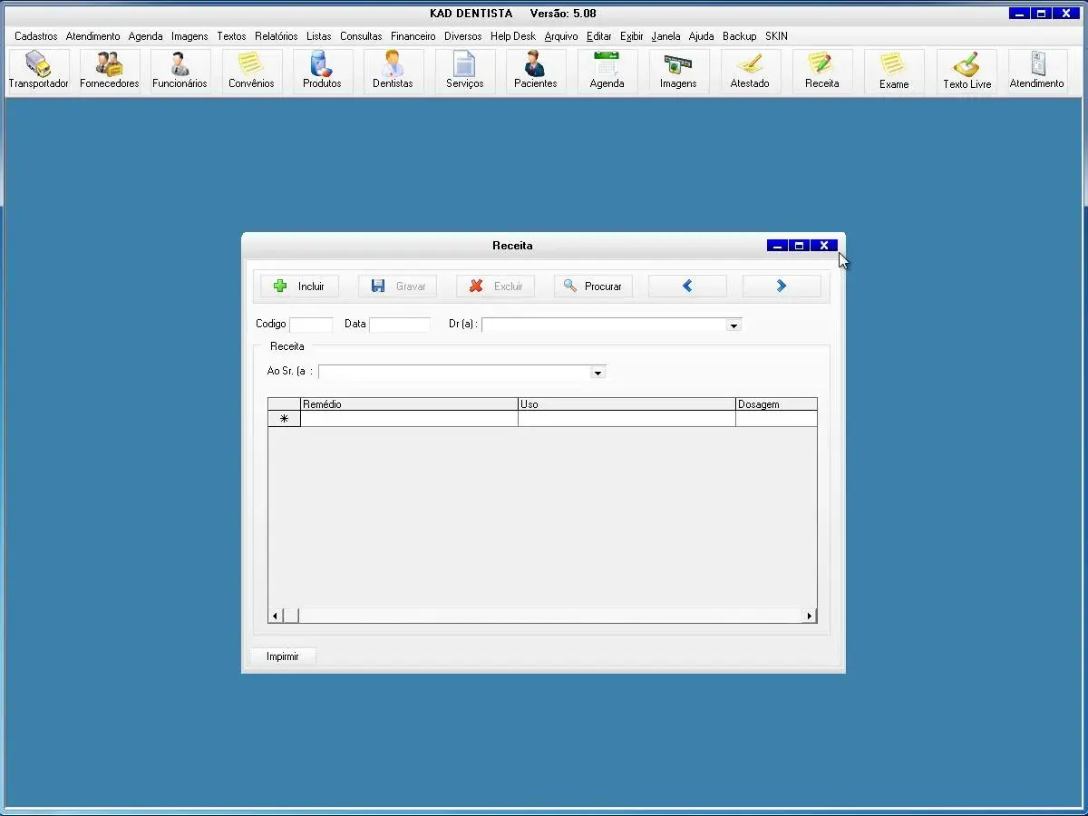O programa para clínica dentária possui cadastro de atestado, receita e pedido de exames