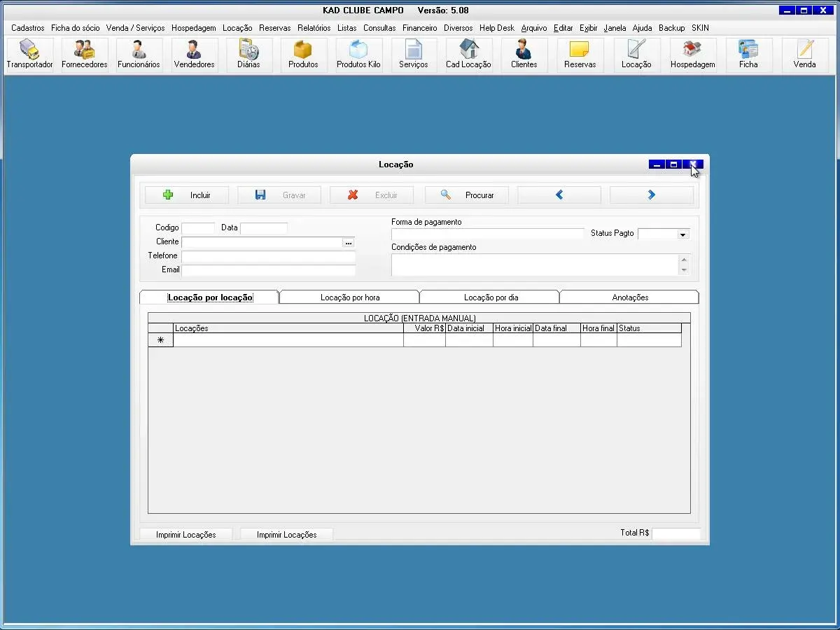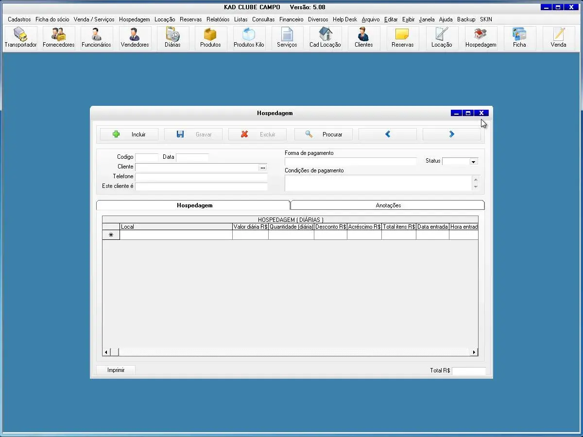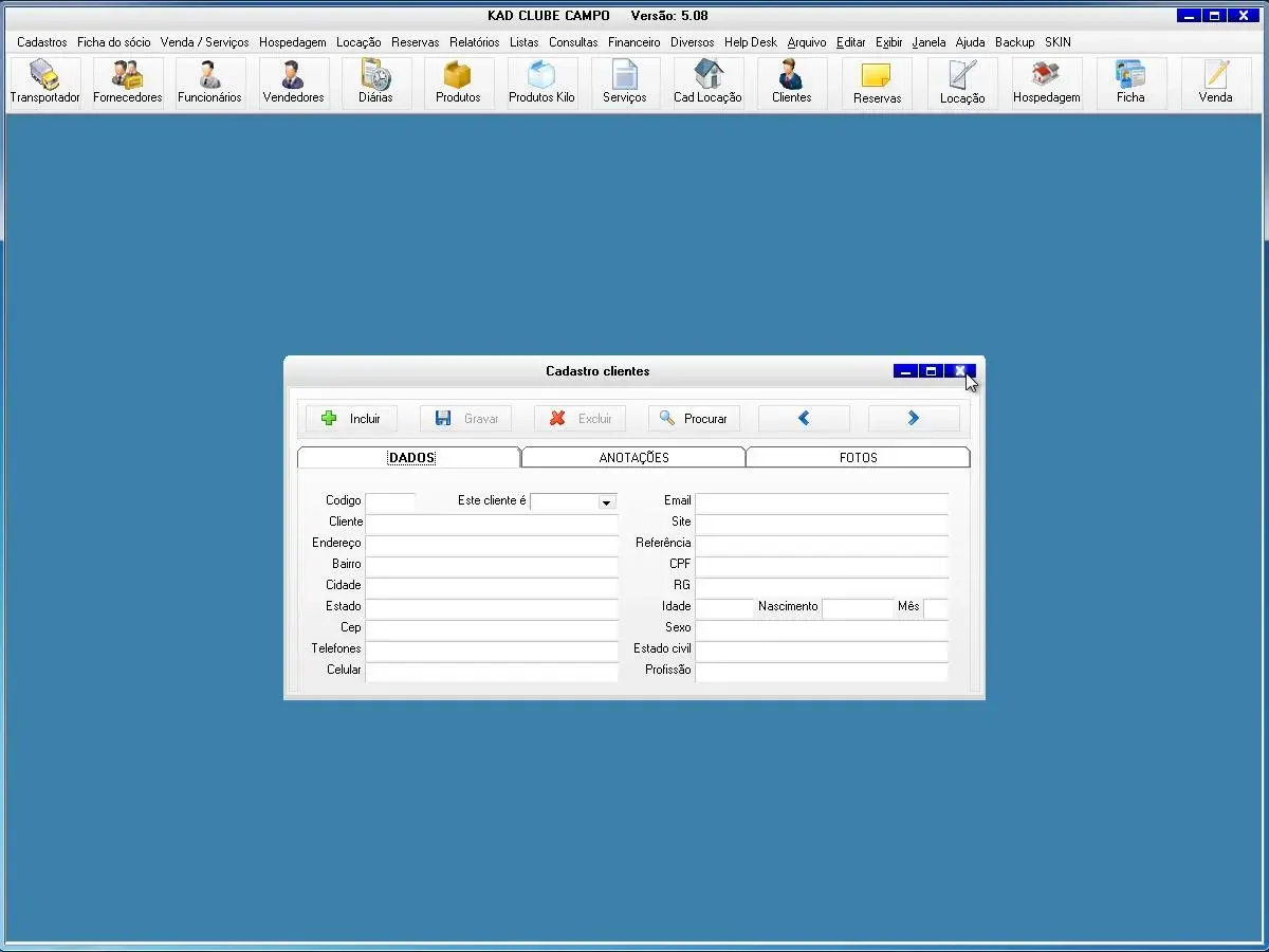 transportadoras, fornecedores, funcionários, vendedores, diárias, produtos, produtos por kilo, serviços, locações, clientes, mesas, garçons
