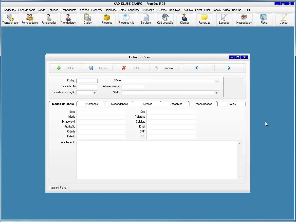 produtos, sócios ativos, sócios inativos, clientes, vendedores, funcionários, fornecedores, transportadoras, aniversariantes (clientes)