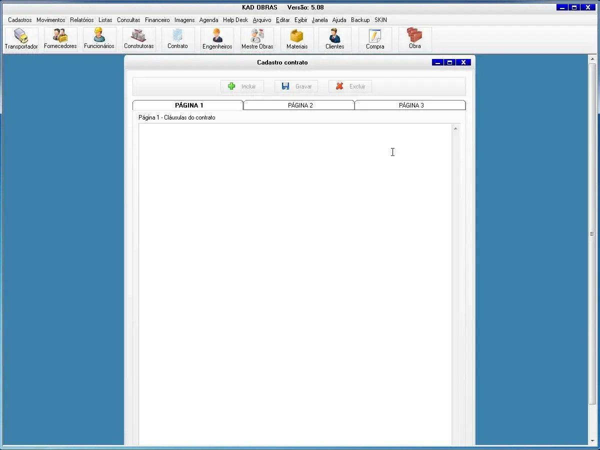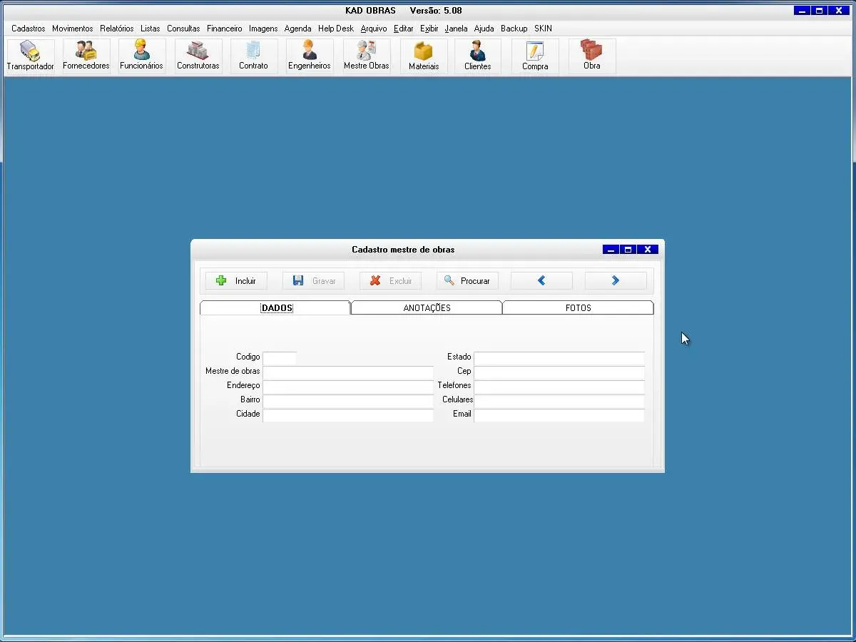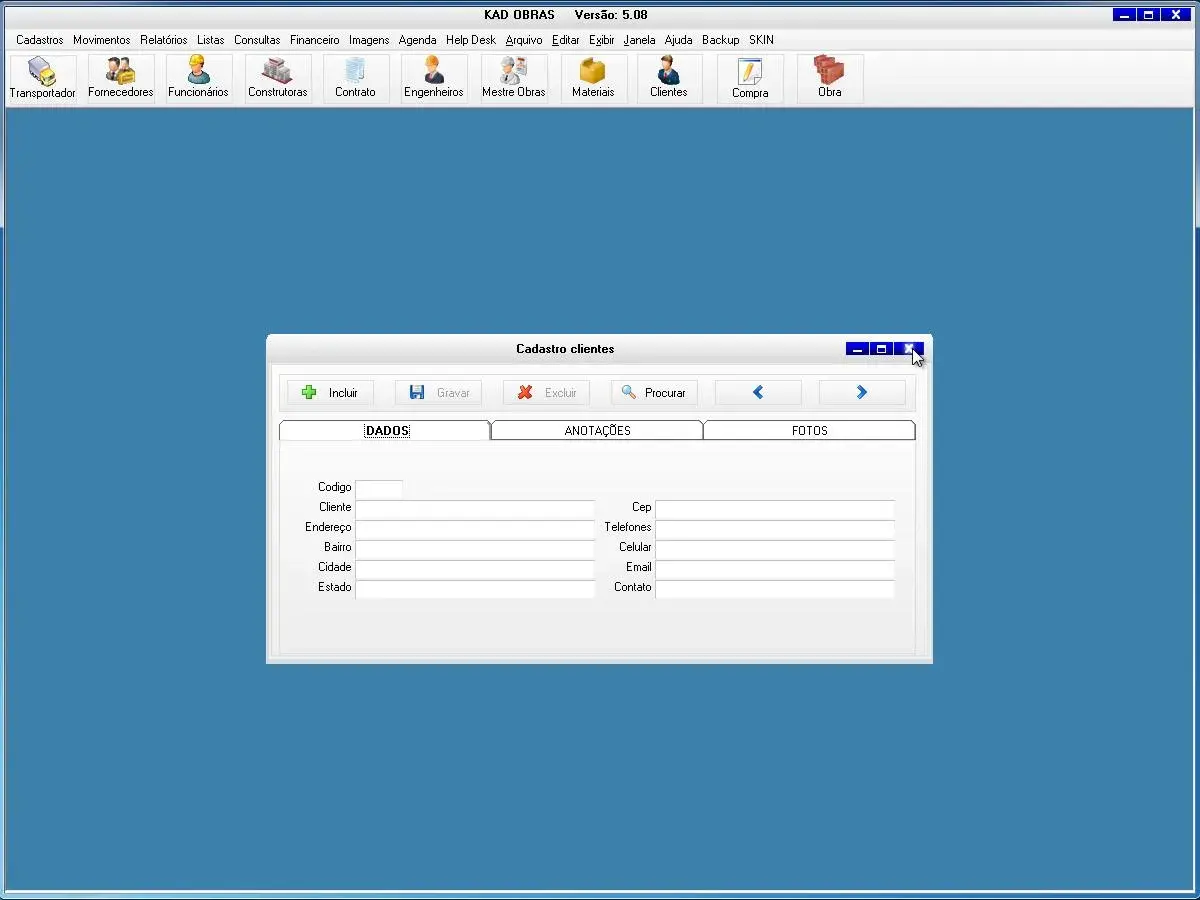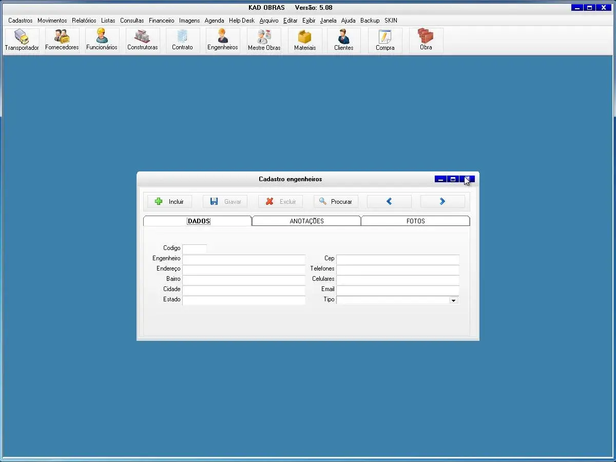O sistema para construção civil possui cadastro de orçamentos de obras