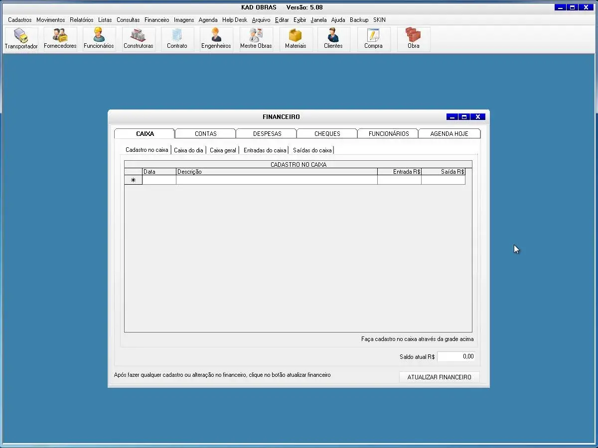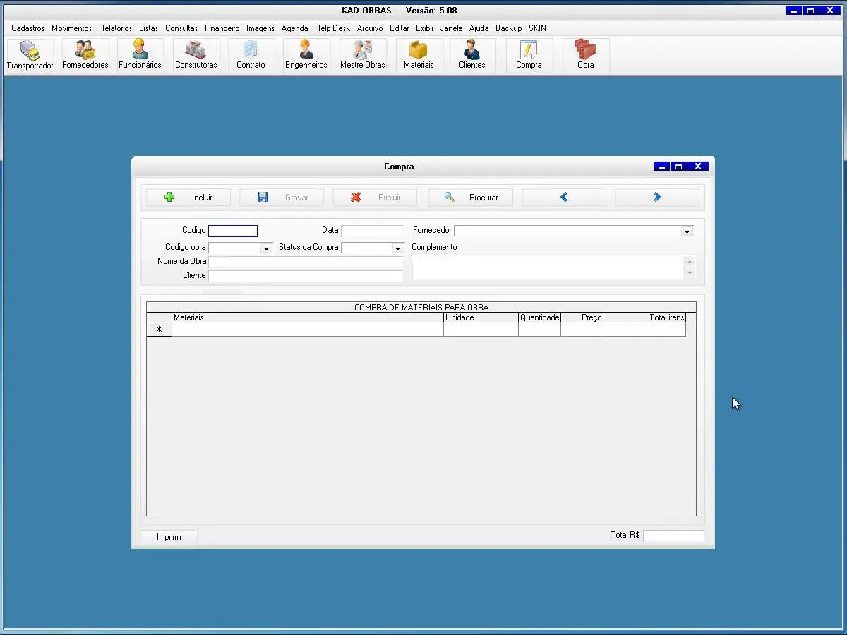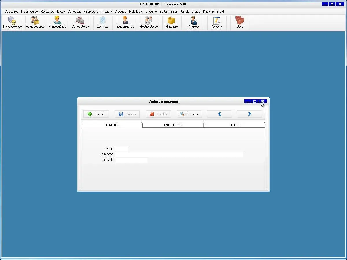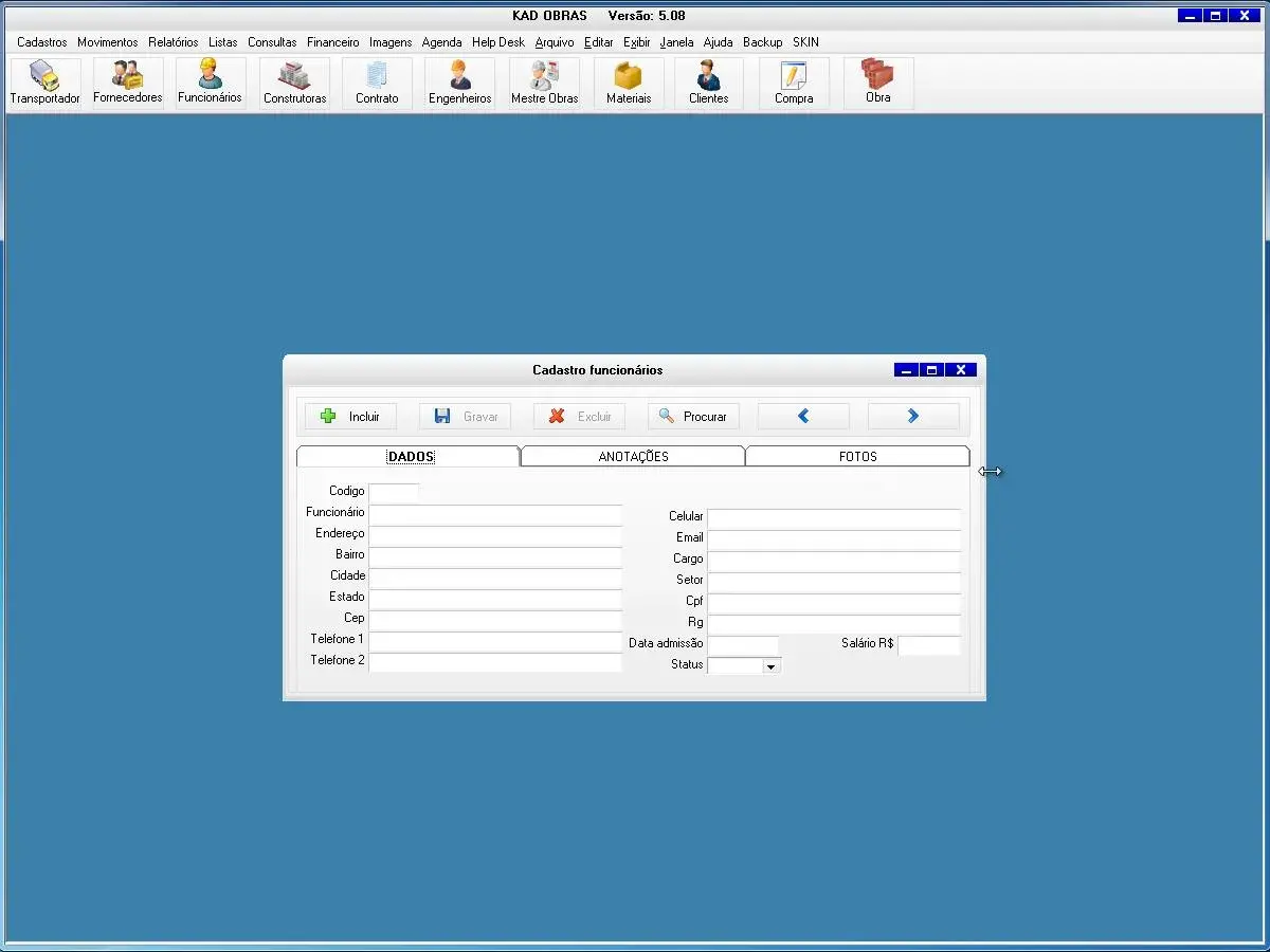 O sistema para construção civil possui cadastro de orçamentos de obras