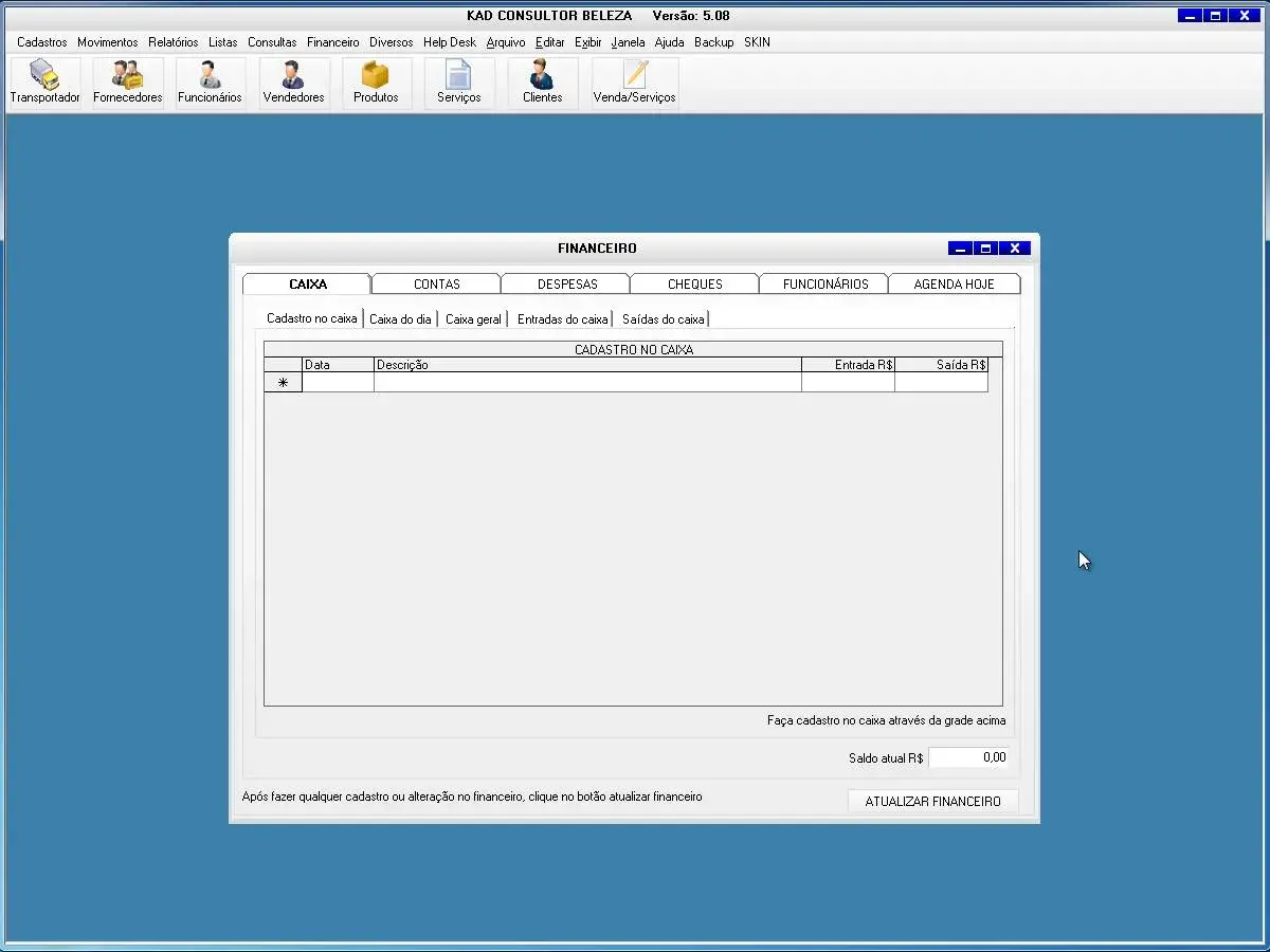 caixa, contas, despesas, funcionários, agenda hoje