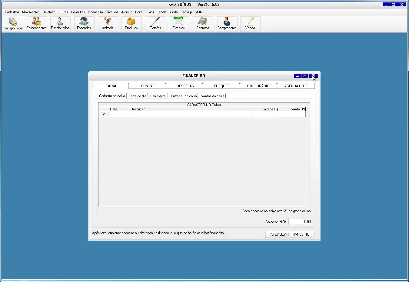 caixa, contas, despesas, funcionários, agenda hoje