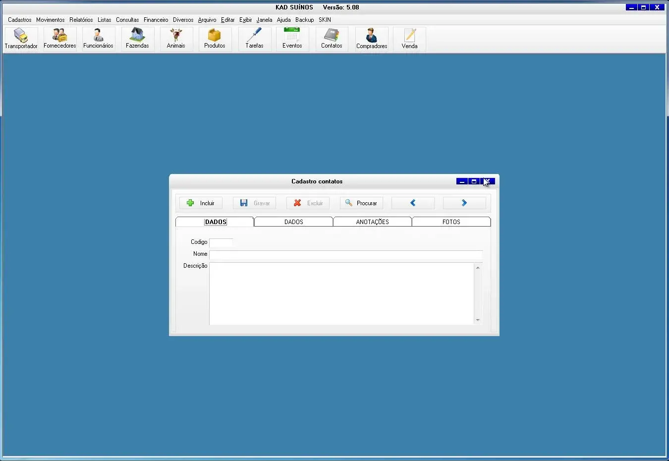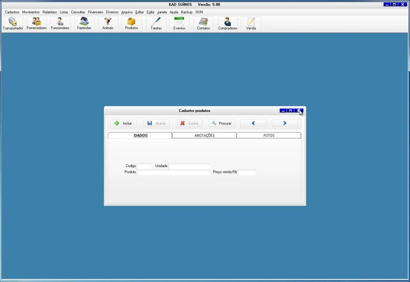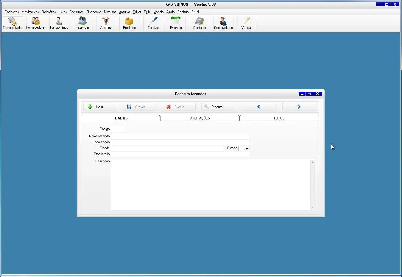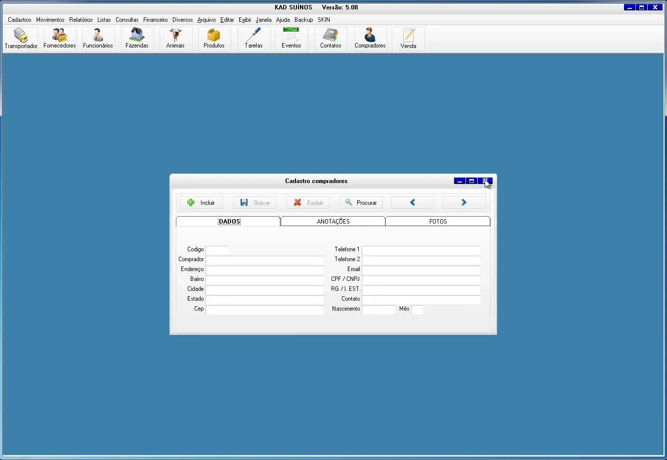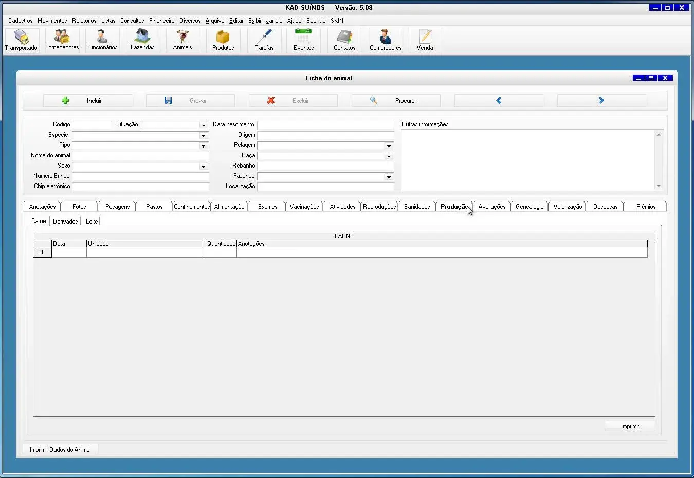 O software para criador de suínos possui ficha do animal para cadastrar todas informações