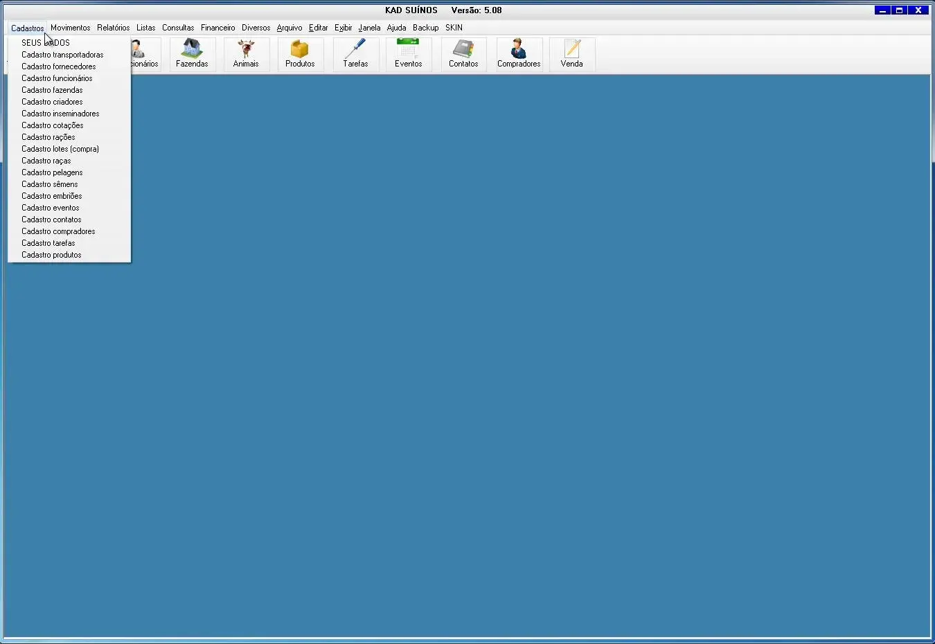 O programa de criação de suínos possibilita o cadastro de criadores, inseminações, sêmens e embriões