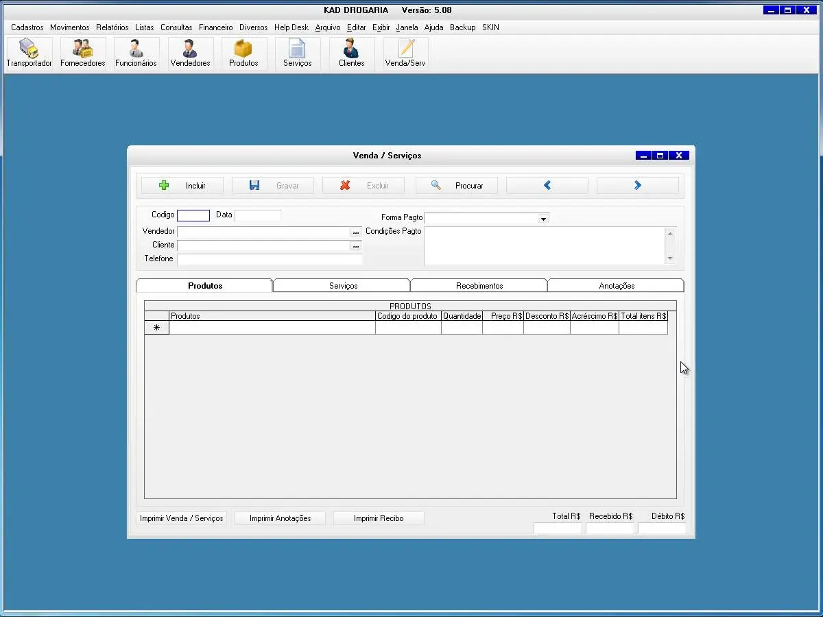 O software para drogaria possui tela de vendas e orçamentos