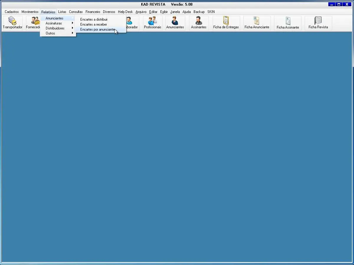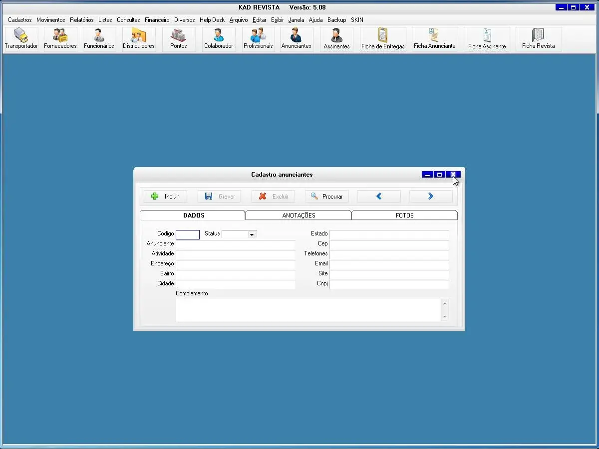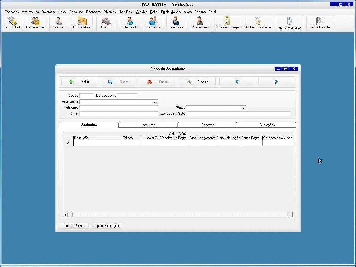 O software para editora de revistas possibilita o cadastro e controle de anúncios e anunciantes