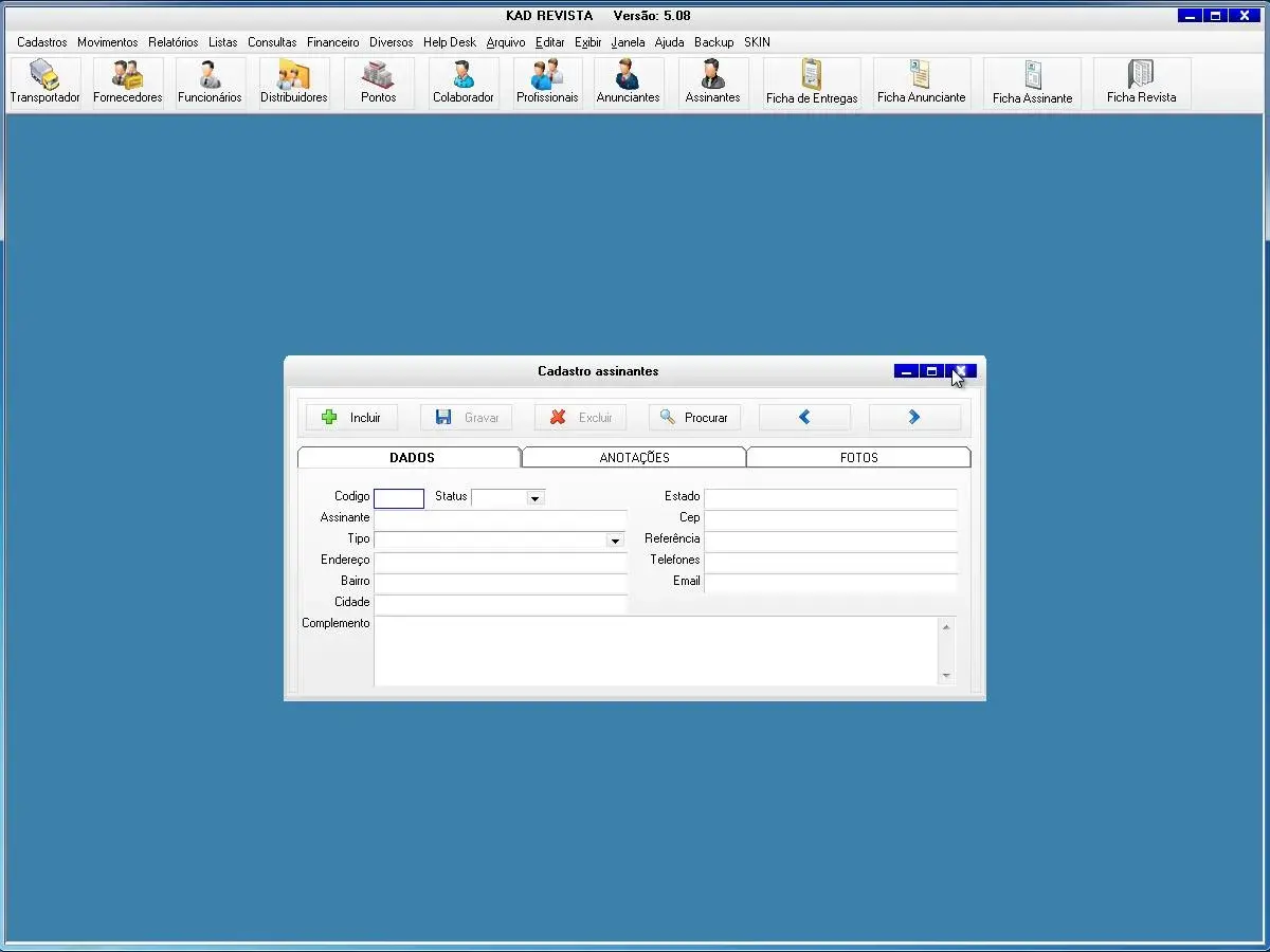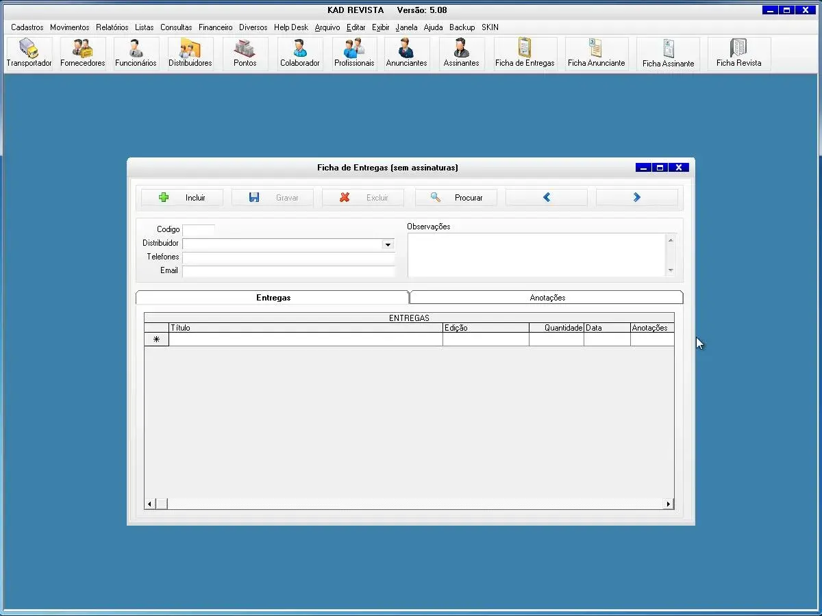 ficha do anunciante, ficha do assinante, ficha da revista, ficha de entregas