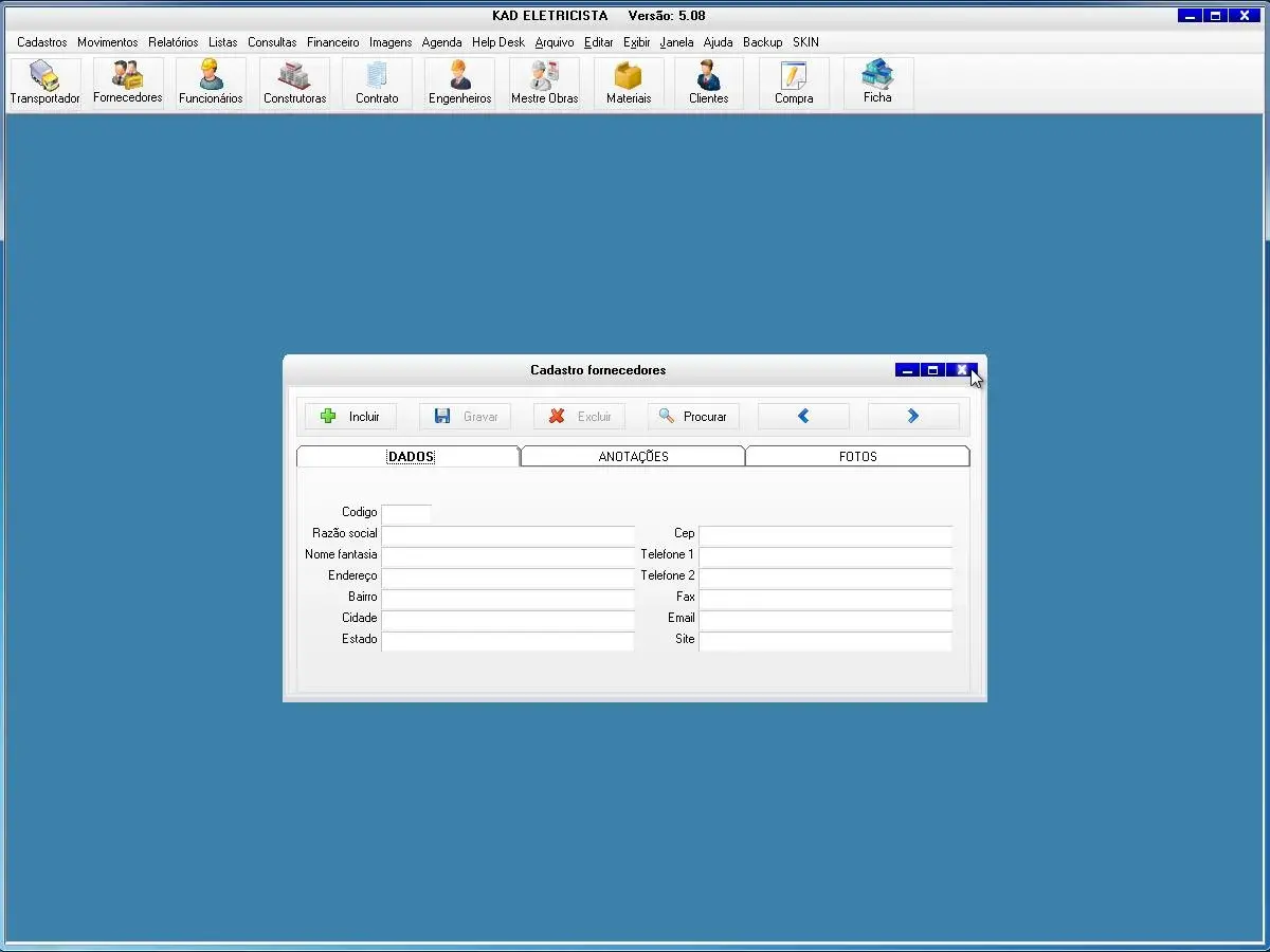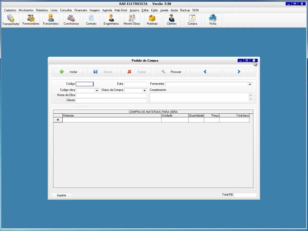 O programa para eletricista possui cadastro de compra de materiais