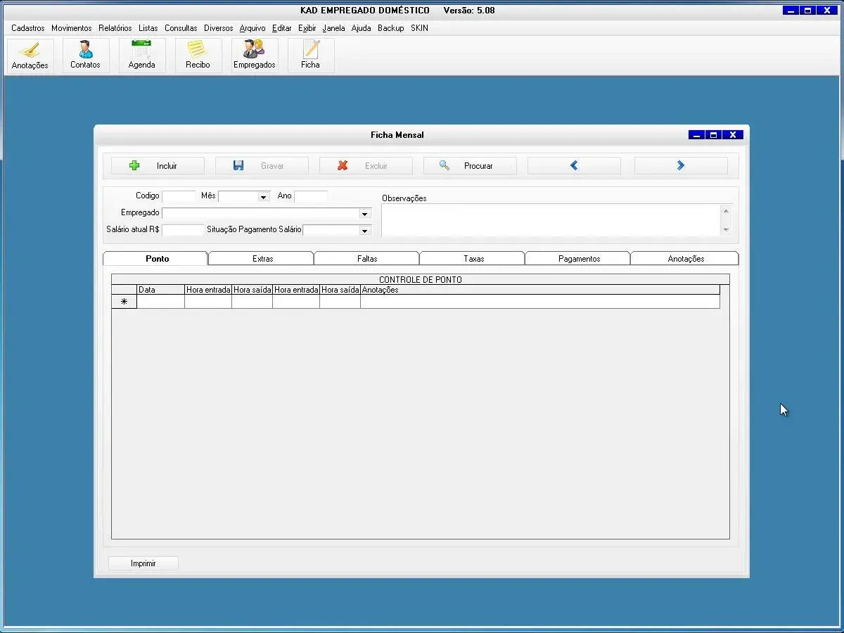 O software para empregado doméstico possui cadastro de horários e faltas