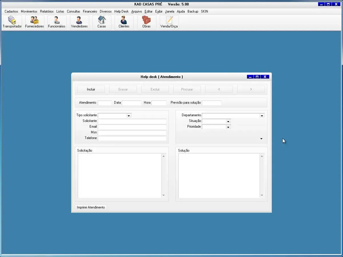 O sistema para empresa de casas pré-fabricadas possui consultas e relatórios