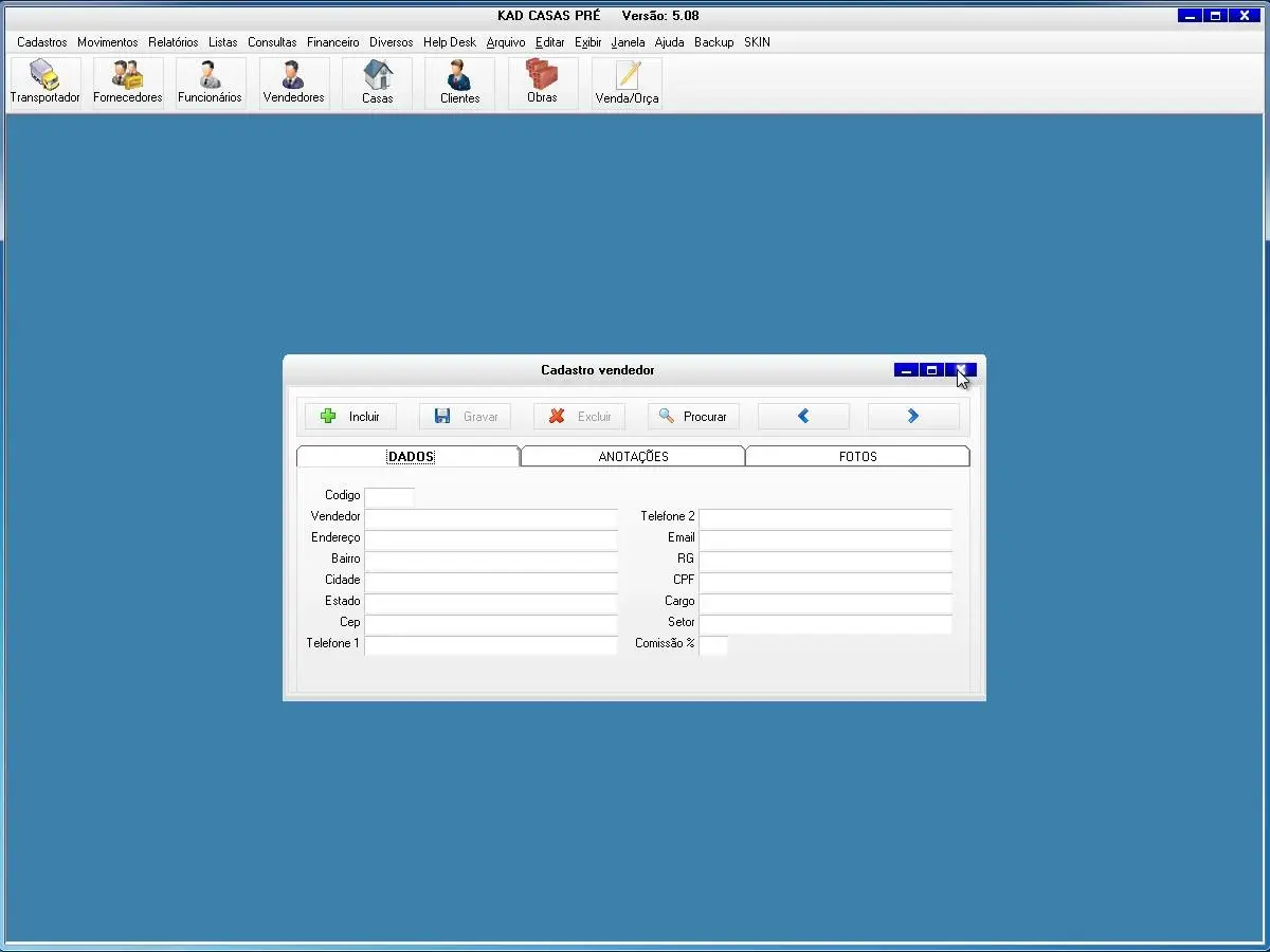 casas em orçamentos, casas à entregar, casas em construção, casas entregues, vendas por período, vendas por vendedor, obras a executar, obras em execução, obras concluídas, clientes aniversariantes