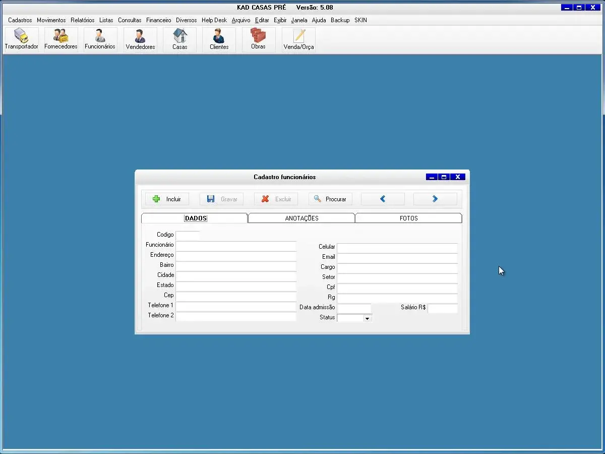 transportadoras, fornecedores, funcionários, vendedor, casas, clientes