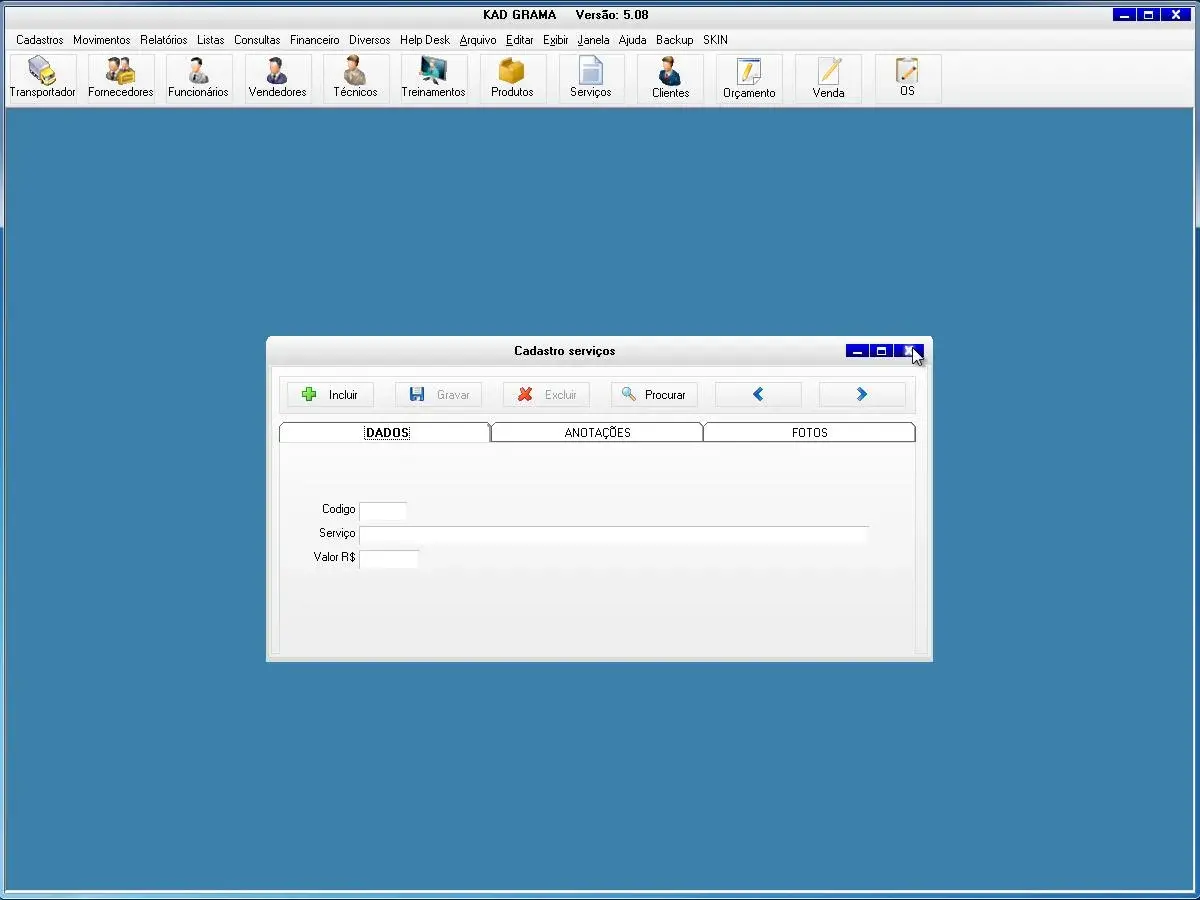 transportadoras, fornecedores, funcionários, vendedor, técnicos, treinamentos, produtos, serviços, clientes
