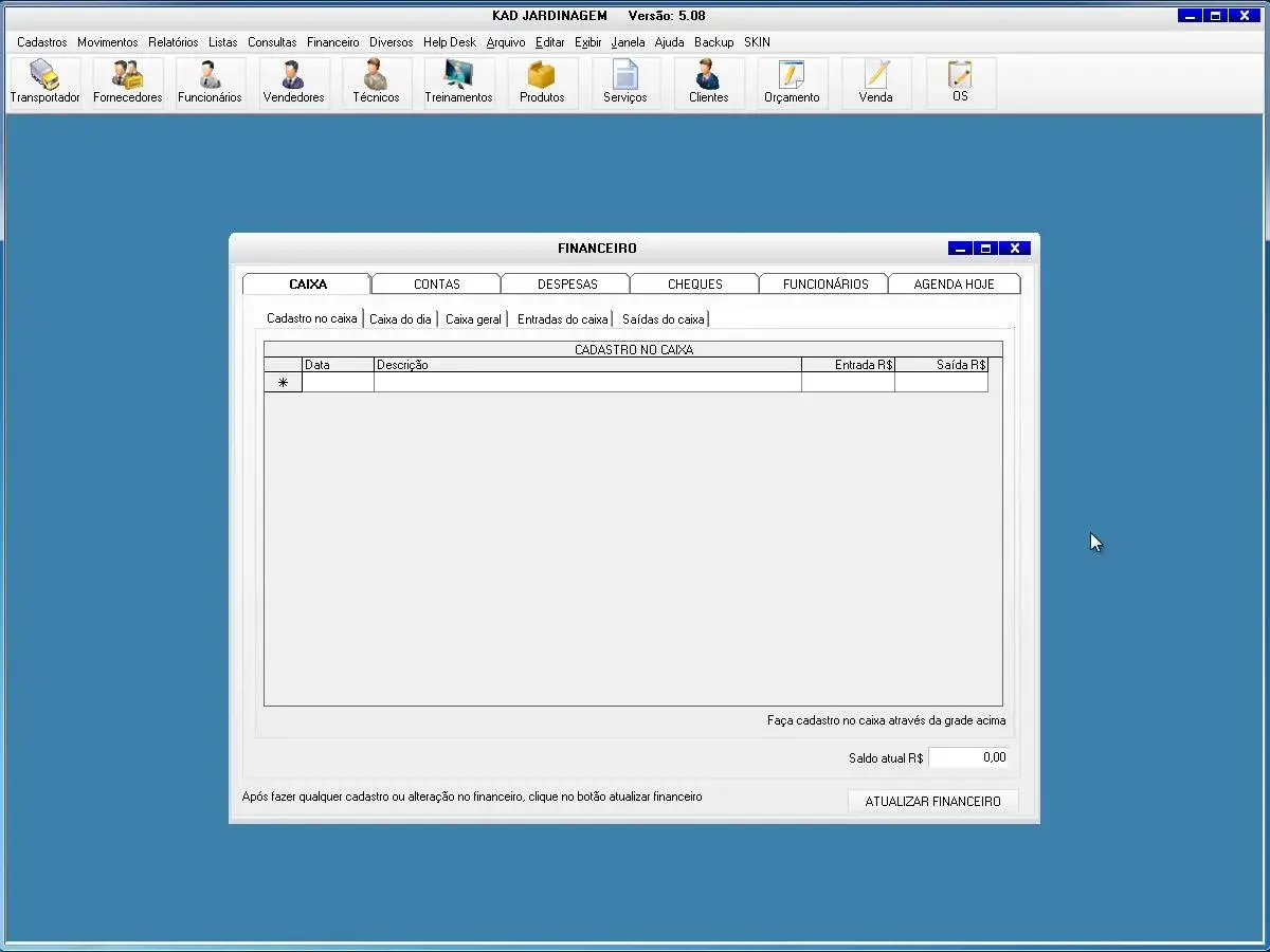caixa, contas, despesas, funcionários, agenda hoje