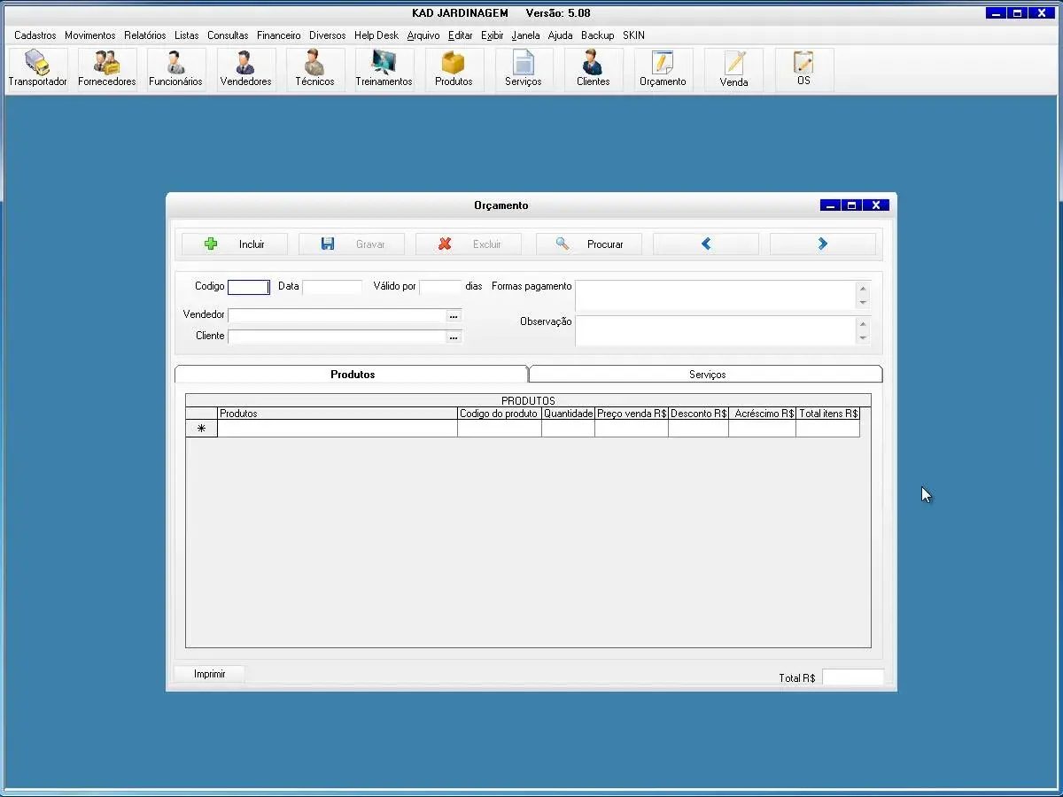 O programa para empresa de jardinagem possibilita o controle de todos os serviços , vendas e orçamentos