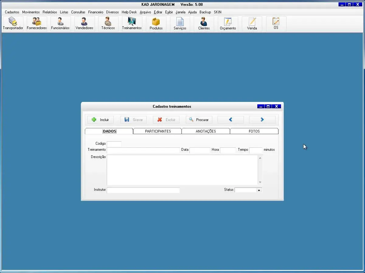 transportadoras, fornecedores, funcionários, vendedores, técnicos, treinamentos, produtos, serviços, clientes